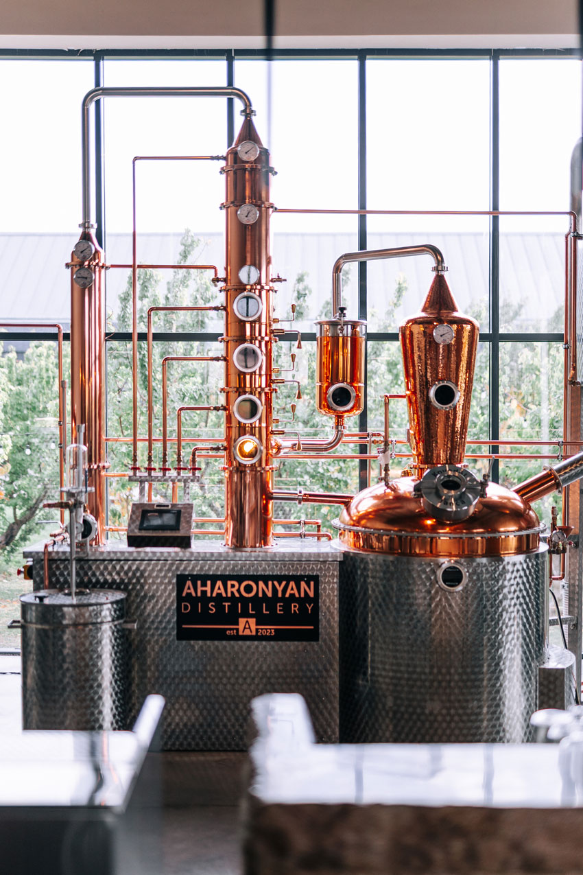 Արամ և Լուսինե Ահարոնյաններն են՝ Aharonyan Distillery-ի հիմնադիրները։ Երեք տարի առաջ, նրանց ջանքերով, հայկական հողի սրտում՝ ծիրանի, խնձորի և դեղձի բազմամյա այգիների մեջ, ստեղծվեց այս յուրահատուկ դիստիլերիան։ Այն հիմնվեց Հայաստանի իսկական, մաքուր և կենդանի համը վերականգնելու երազանքի հիման վրա։ Այգիներն էին մեկնարկային կետը․ զորացվեցին նոր տնկած ծառերով, ձևավորվեցին landscaped այգիներ, և կառուցվեցին շենքեր՝ տեղական տուֆից՝ երկրի շունչը պահող քարով։ Ինտերիերը մշակվել է տաղանդավոր դիզայներների հետ համատեղ, որպեսզի յուրաքանչյուր սրահ և յուրաքանչյուր մանրուք փոխանցի նույն ջերմությունը, ինչ դիստիլերիայի ստեղծած ըմպելիքները։ Aharonyan Distillery-ն մի վայր է, որտեղ յուրաքանչյուր կաթիլ պատմում է ընտանիքի, հողի, վերադարձի և սիրով ստեղծած համի պատմությունը։