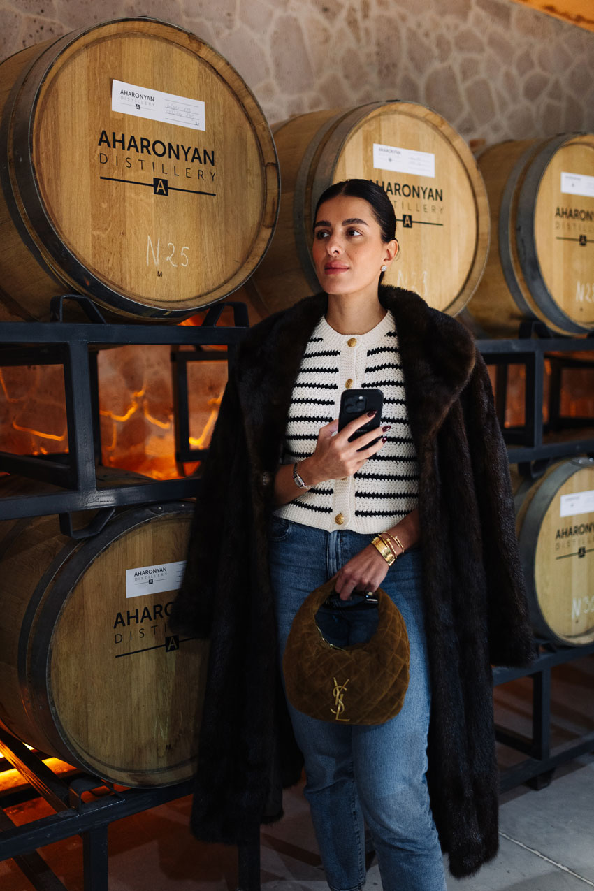 Ընկերսուհիս՝ Ֆաինան, վաղուց էր պատմել այս նոր վայրի մասին և նույնիսկ նշել, որ ցանկանում են ինձ հետ համագործակցել, բայց քանի որ սովորաբար քաղաքից դուրս նկարահանումներ չեմ իրականացնում, հրաժարվել էի։ Օրերս, Երևանի նորաձևության շաբաթվա շրջանակում, արտերկրից ժամանած հյուրերին հրավիրել էին «Ահարոնյան դիստիլերիա», և ես ևս միացա նրանց։ Այնքան տպավորված էի և այնքան հավանեցի այս վայրը, որ հենց այցից հետո որոշեցի օգտվել առիթից ու կիսվել Ձեզ հետ։ Ցանկանում եմ ներկայացնել, թե ինչքան ճաշակով, յուրօրինակ և բարձրորակ նոր վայրեր են բացվում Հայաստանում՝ ընդամենը մի քանի րոպե ճանապարհ՝ Երևանից, հենց Աշտարակի սկզբում։ Ավելի կոնկրետ հասցե՝ Արագածոտնի մարզ, Աշտարակի համայնք, հողամաս 25:
