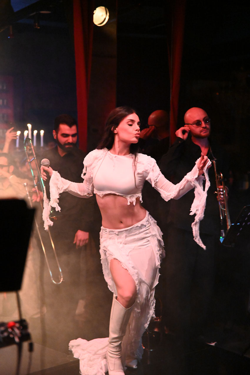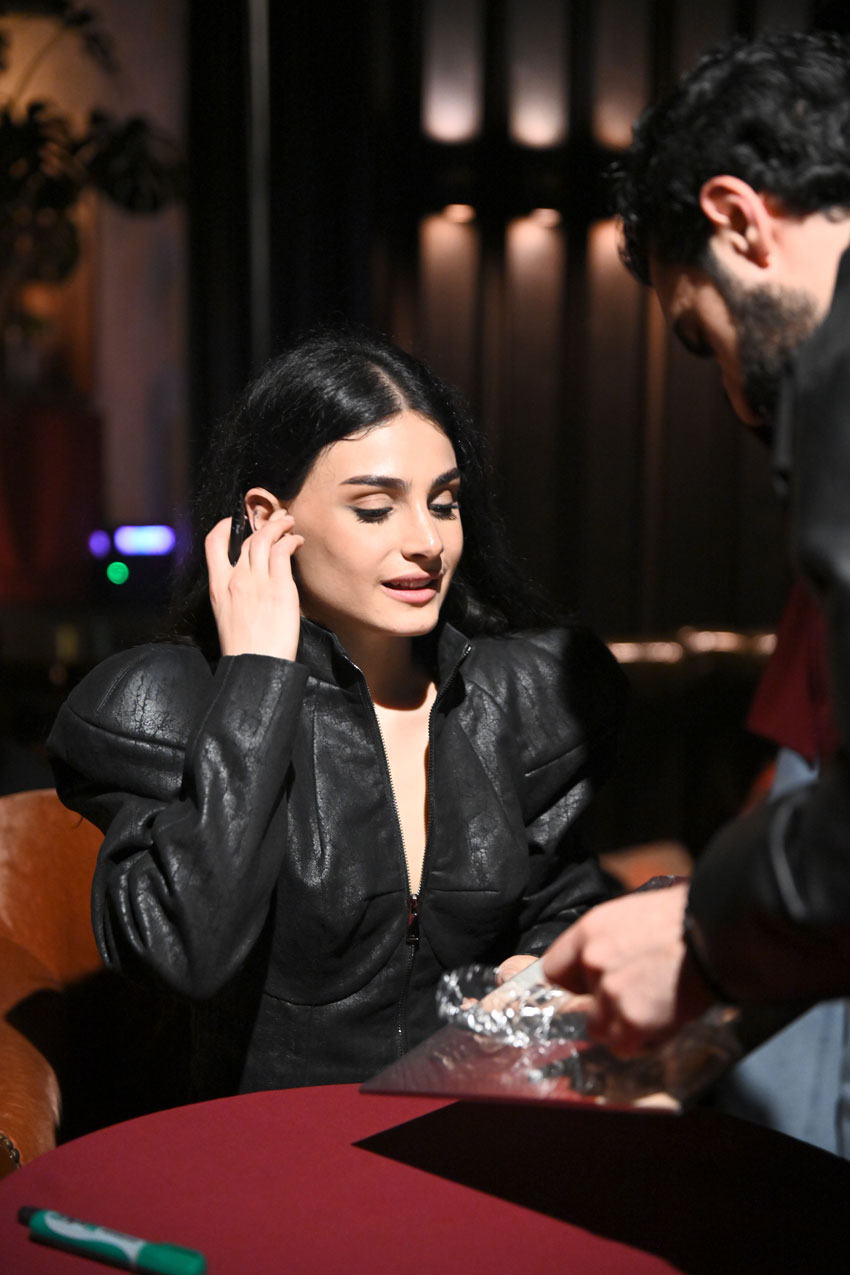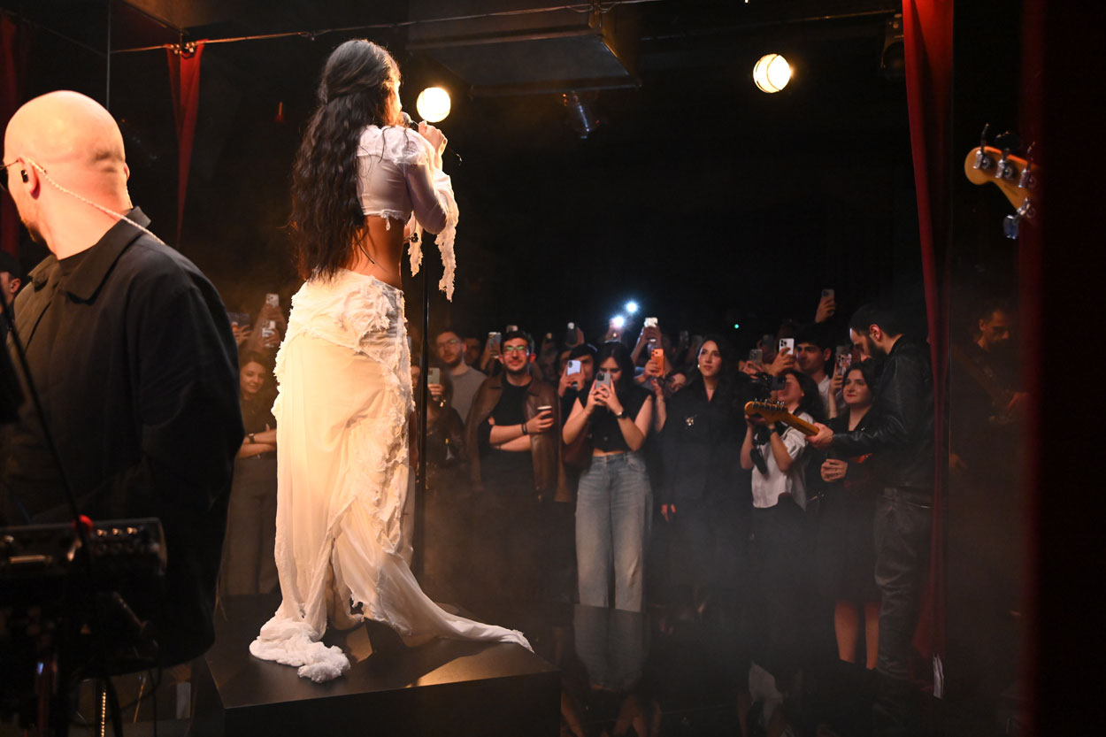 Իհարկե, չէի կարող չանդրադառնալ վերջին շրջանի սկանդալին՝ կապված «Խազեր» մրցանակաբաշխության հետ։ Այս ամսին Բրյունետը հայտնեց, որ նա չի մասնակցելու որևէ մրցանակաբաշխության առհասարակ, չնայած որ նա ինչպես նախորդ, այնպես էլ այս տարվա բոլոր գլխավոր մրցանակների հավակնորդն է, սա իմ անձնական կարծիքն է։ Իրականում չէի ցանկանում վինիլի հավես երեկոյի ընթացքում տխրեցնել նրան, ու տալ ոչ այնքան հաճելի հարցեր կապված մրցանակաբաշխության, անվանակարգերի ու մերժման հետ։ Կարծում եմ, բոլորս էլ հասկանում ենք դրդապատճառները, իսկ երկրպագուները ընտրում են նրան՝ որպես երգչուհի, ով այս պահին գլխավոր ու ամենահետաքրքիր հայկական երգչուհիներից է, և չունի կարիք դա ապացուցելու։ Սա նրա կարևոր ու հաջող երեկոն է, ու ավելի լավ է թողնել, որ նա իր հյուրընկալների ու լսարանի հետ միասին վայելի փարթին։