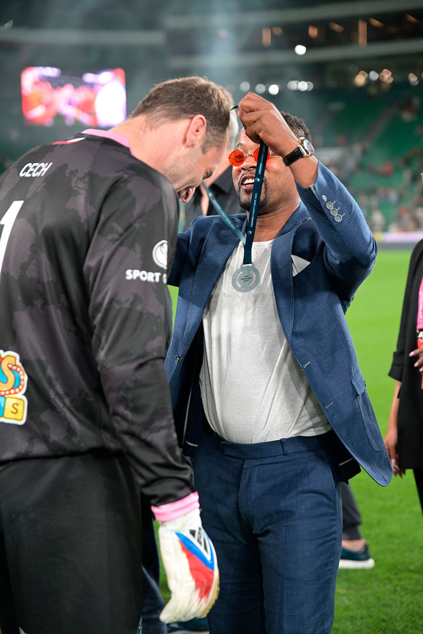 Համաշխարհային թիմի մարզիչը Պիտեր Շմեյխելն էր։ Միջոցառման առանձնահատուկ պահերից մեկն այն է, որ խաղին մասնակցեց նաև բռնցքամարտի ծանրքաշի չեմպիոն Օլեքսանդր Ուսիկը, որը հանդես եկավ իր հիմնադրամի աջակցությամբ՝ հիշեցնելով, որ սպորտը միավորում է բոլոր ոլորտները։