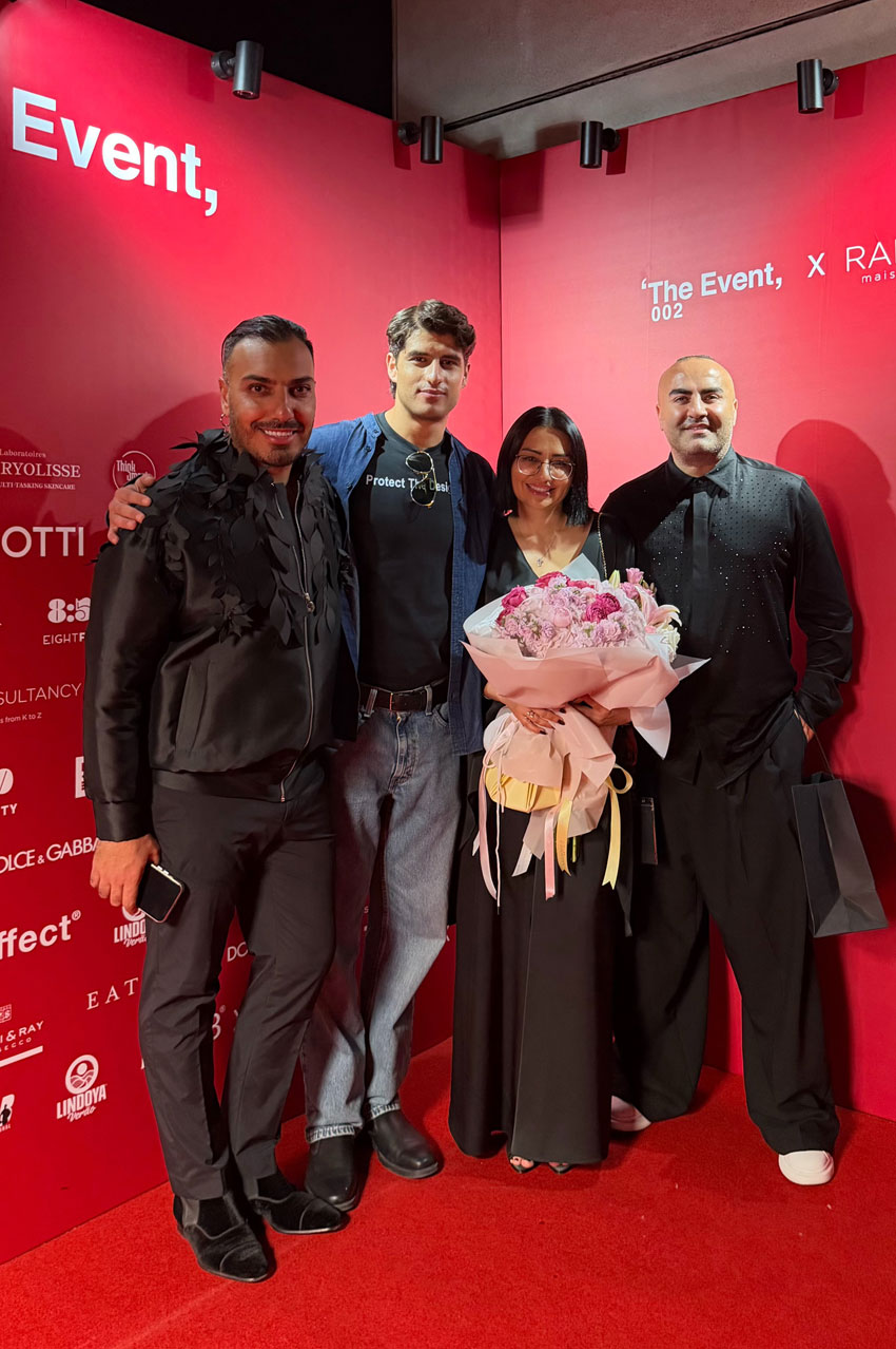 Ահա նաև The Event-ի կազմակերպիչները՝ Ահմադ Ամմարը (Ahmad Ammar) և Վինչենցո Վիսկիլիան (Vincenzo Visciglia)։ Նրանք միասին ներկայացնում են լիբանանա-բրազիլական AAVVA նորաձևության բրենդը։ Իսկ նրանց միջև կանգնած է այս տարվա միջոցառման հրավիրված դիզայները՝ Ռամի Կադին։