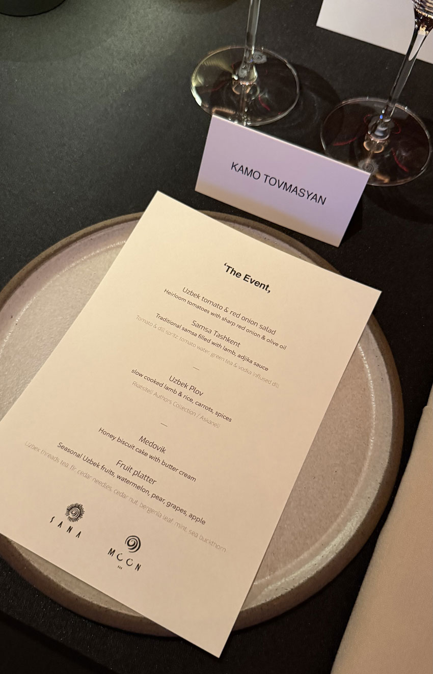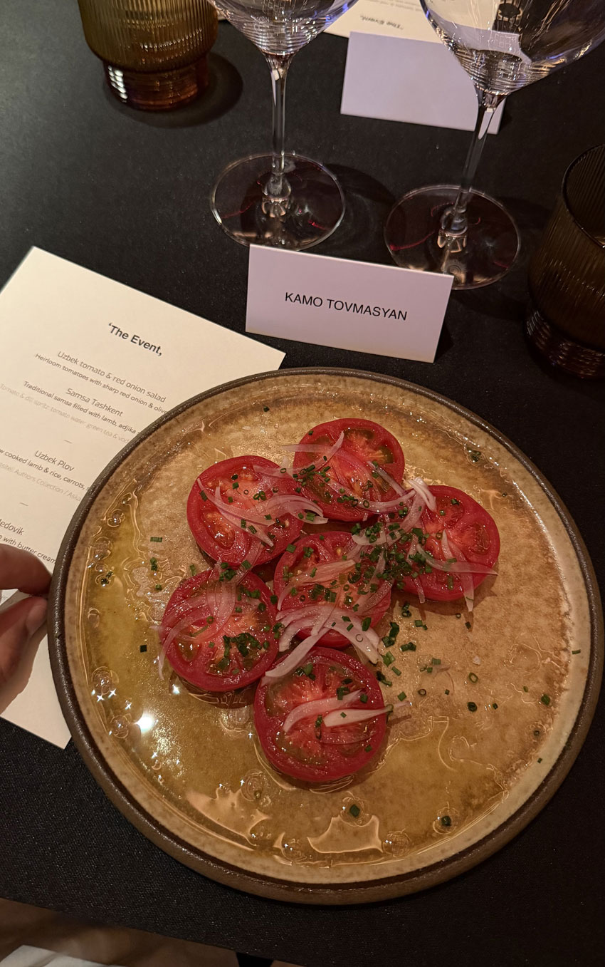 Դե, այստեղ արդեն ինքներդ կարող եք պատկերացնել՝ ուզբեկական խոհանոց, տարբեր կոկտեյլներ։ Կարծում եմ՝ շատերն այնտեղ սիրելի ուտեստներ կունենան՝ սկսած հայտնի ուզբեկական փլավից մինչ սամսա։ Իսկ մեդովիկը՝ ինչպես միշտ, ամեն տեղ մեդովիկ է․ անփոխարինելի կլասիկա։