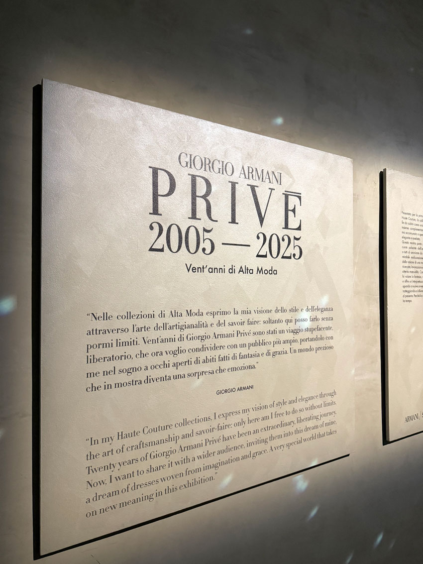 Օրեր առաջ Միլանում մեկնարկեց նաև «Giorgio Armani Privé 2005-2025» ցուցահանդեսը Armani/Silos-ում, որը նշում է Ջորջիո Արմանիի բարձր նորաձևության ուղու երկու տասնամյակն ու ընդգծում նրա ստեղծագործական ժառանգության ամբողջականությունը։ Ցուցահանդեսը կշարունակվի մինչև դեկտեմբերի վերջ՝ ընդգրկելով Armani/Silos-ի հինգ հարկերը։ Հագուստները ներկայացված են ոչ թե ժամանակագրական հերթականությամբ, այլ ըստ տրամադրությունների, նյութերի, գույների և զգայական շեշտադրումների, ինչը թույլ է տալիս դիտողին ընկղմվել Արմանիի գեղագիտական աշխարհում։ Տոմսեր կարող եք ձեռք բերել հենց տեղում, կամ գնել օնլայն՝ ԱՀԱ ԱՅՍՏԵՂ: Հասցե՝ via Bergognone, 40, Միլան