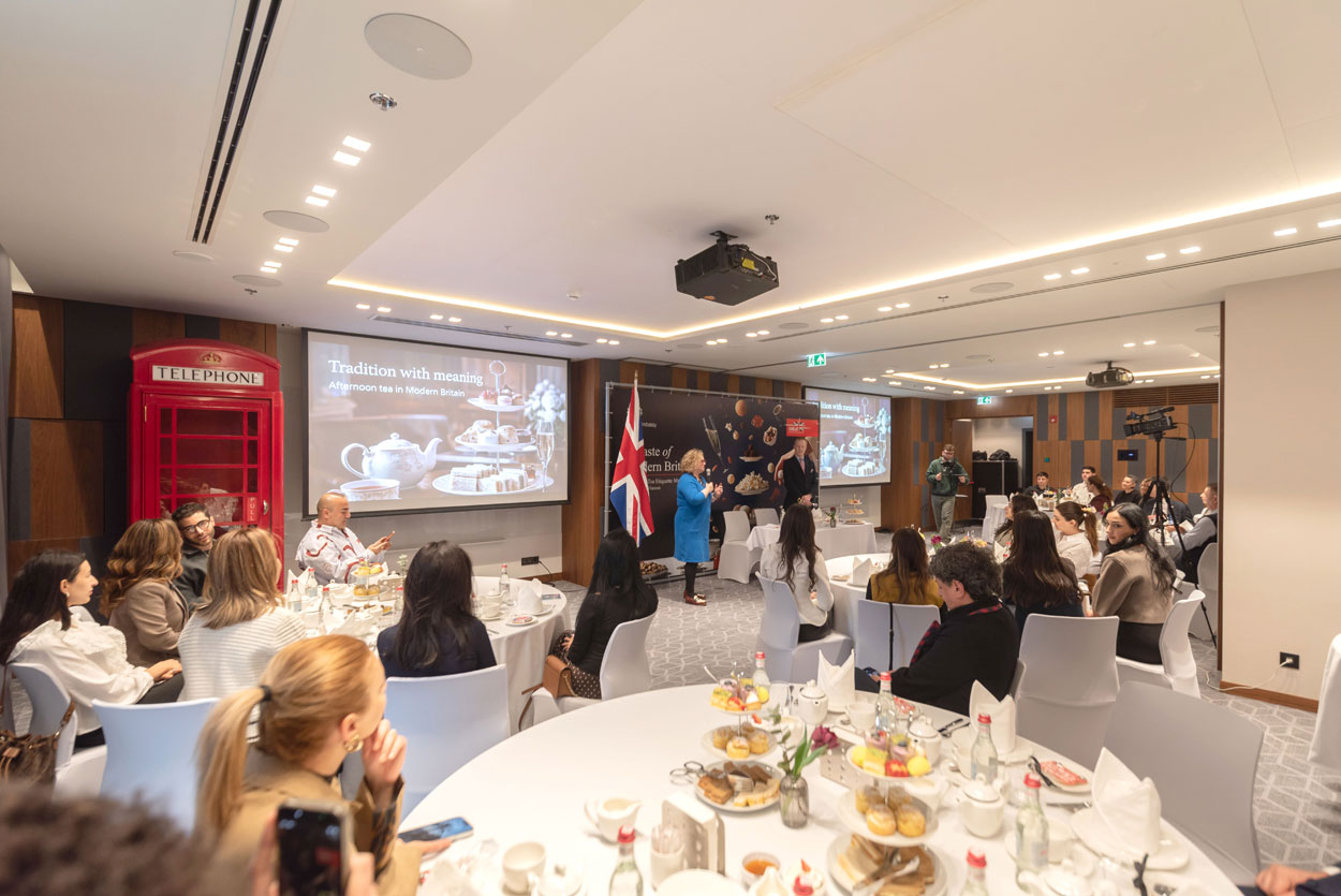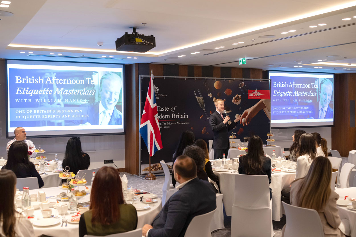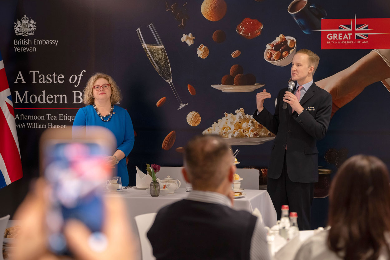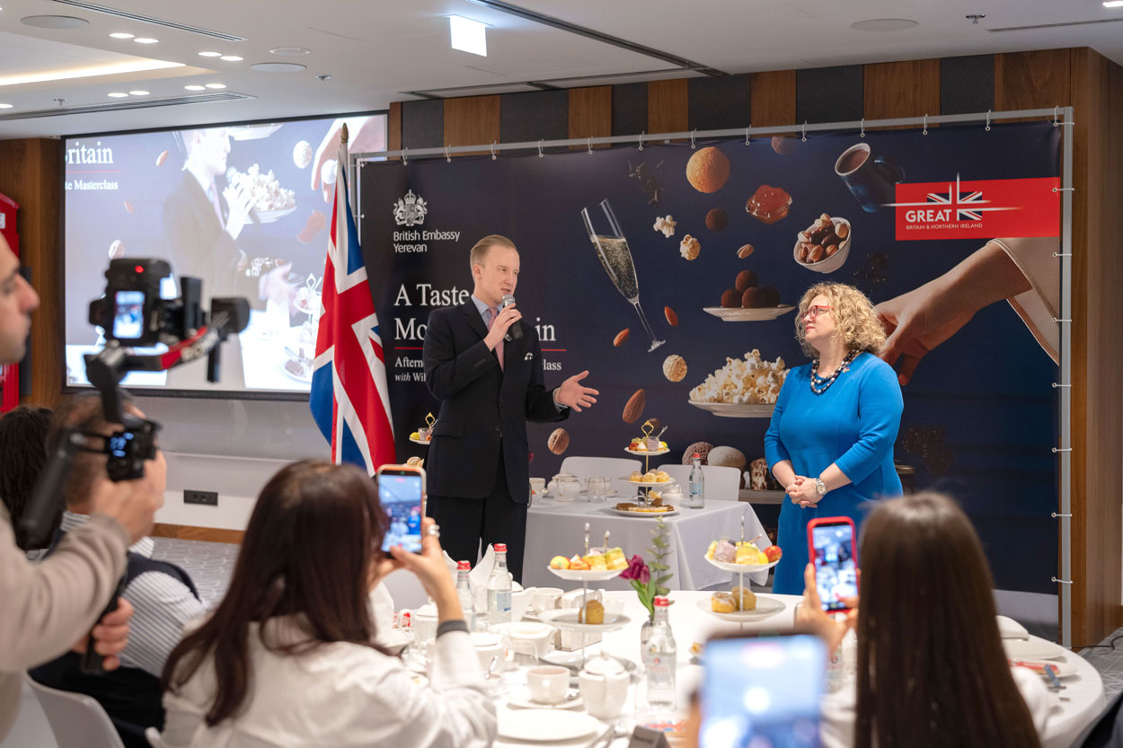 Masterclass-ի ընթացքում մենք քայլ առ քայլ ծանոթացանք բրիտանական afternoon tea-ի մշակույթին՝ թեյի ճիշտ մատուցումից և սպասքի օգտագործումից մինչև սեղանի վարքականոնի նրբությունները և ավանդույթների պատմությունը։ Յուրաքանչյուր մասնակից ուներ իր անհատական սպասքը և դասական afternoon tea-ի բաղադրիչները, իսկ Ուիլյամը մանրամասն բացատրում էր՝ ինչու և ինչպես է ամեն ինչ արվում բրիտանական ավանդույթի համաձայն։