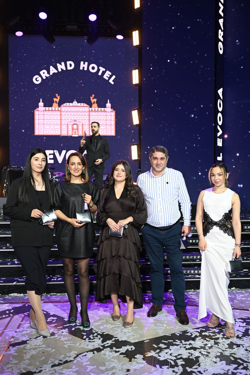 Իհարկե, գնալով Evocabank-ի ամանորյա երեկոյին՝ ես գիտեի, որ մեզ սպասվում է ինչ-որ յուրահատուկ օր, բայց նման օրիգինալ մոտեցում չէի ակնկալում։ Ողջ երեկոն ներշնչված էր Wes Anderson-ի The Grand Budapest Hotel ֆիլմից, և Դվին Մյուզիք Հոլը ամբողջությամբ վերածվել էր հենց ֆիլմի էսթետիկայով ստեղծված GRAND HOTEL EVOCA հյուրանոցի։ Վահագն Մարտիրոսյանը իր բենդով մեզ դիմավորեց առաջին հարկում, հյուրանոցի հյուրընկալները փոխանցում էին մեր հաջողակ համարները բանալիների տեսքով, իսկ պորտիեն հյուրասիրում էր պրոսեկո։