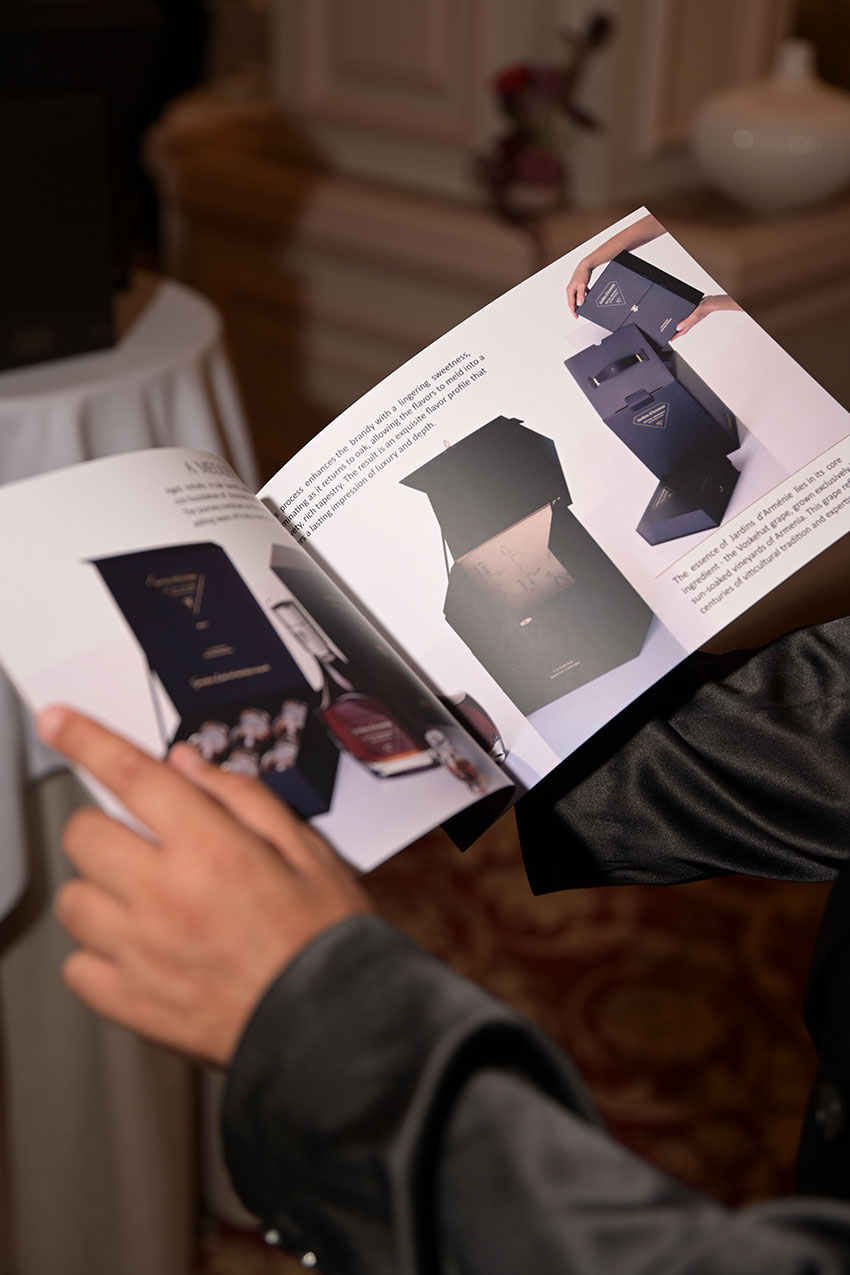 Երեկոն եզրափակվեց բացառիկ համտեսով, որը վարեց Բրունո Սկավոն՝ Մոնտե-Կառլոյի SBM համալիրի նախկին գլխավոր սոմելյեն։ Նա հյուրերին առաջնորդեց այս բացառիկ խմիչքի բազմաշերտ բույրերի ու նուրբ բարդության աշխարհում։ Այս կարևոր հանգրվանով «Jardins d’Arménie» թագավորական բրենդին կատարեց իր պաշտոնական եվրոպական դեբյուտը՝ հաստատելով ձգտումը՝ ներկայացնել նոր կատեգորիա, որը միավորում է հնագույն վարպետությունը և ժամանակակից նորարարությունը։
