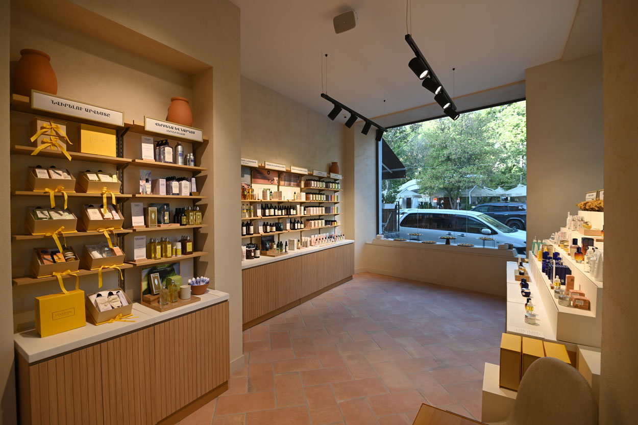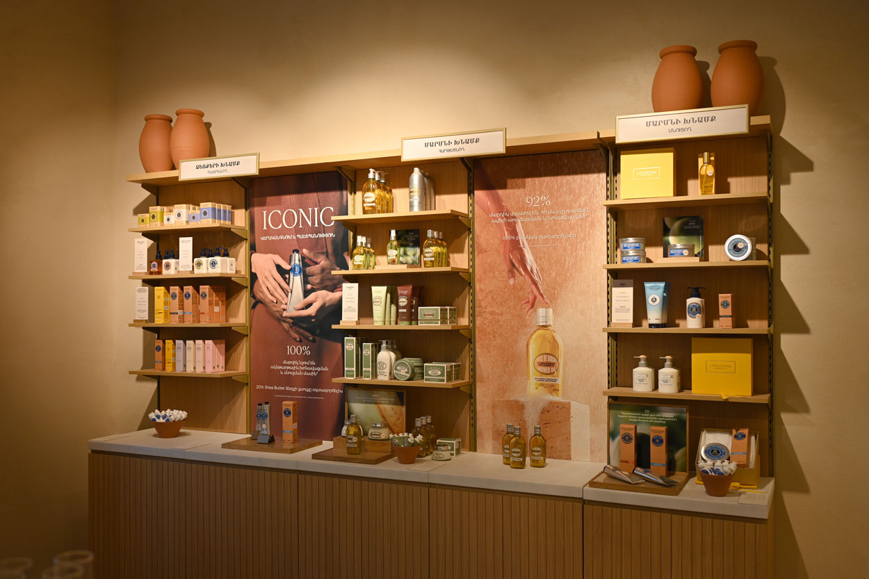 Նոր սրահը ներկայացված է հատուկ մոնոբրենդ retail store կոնցեպտով, որը պատվիրակվում է հենց ապրանքանիշի միջազգային մոտեցումներից։ Սրահի ներքին ձևավորումը ամբողջությամբ ոգեշնչված է Պրովանսից՝ այն տարածաշրջանից, որտեղ 1976 թվականից սկիզբ է առել L’Occitane-ի պատմությունը։ Այստեղ ամեն մանրուք՝ գույները, բույրերը, ինտերիերի ատաղձը, արտացոլում է բրենդի արմատներն ու արժեքները՝ այցելուներին թույլ տալով զգալ Ֆրանսիայի հարավի մթնոլորտը, առանց անգամ այնտեղ այցելելու։
