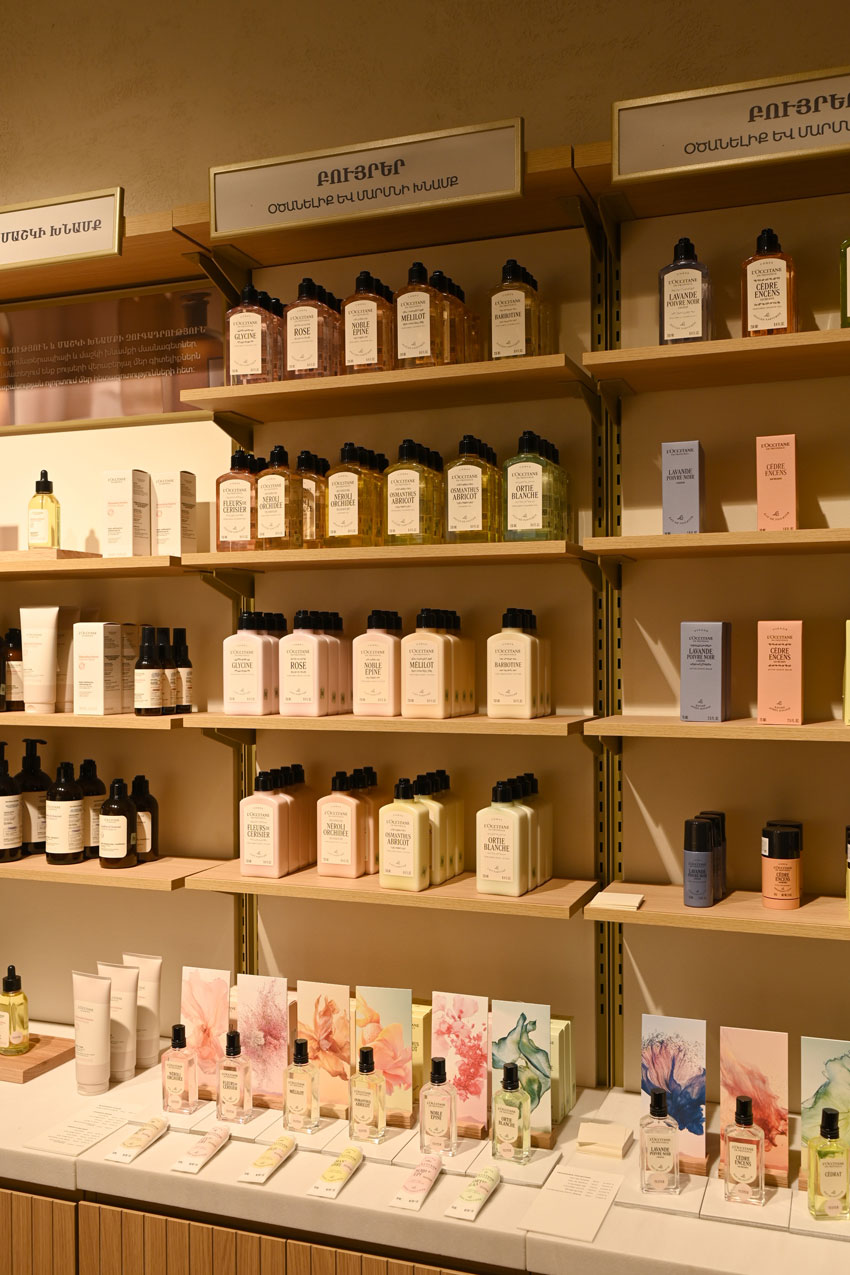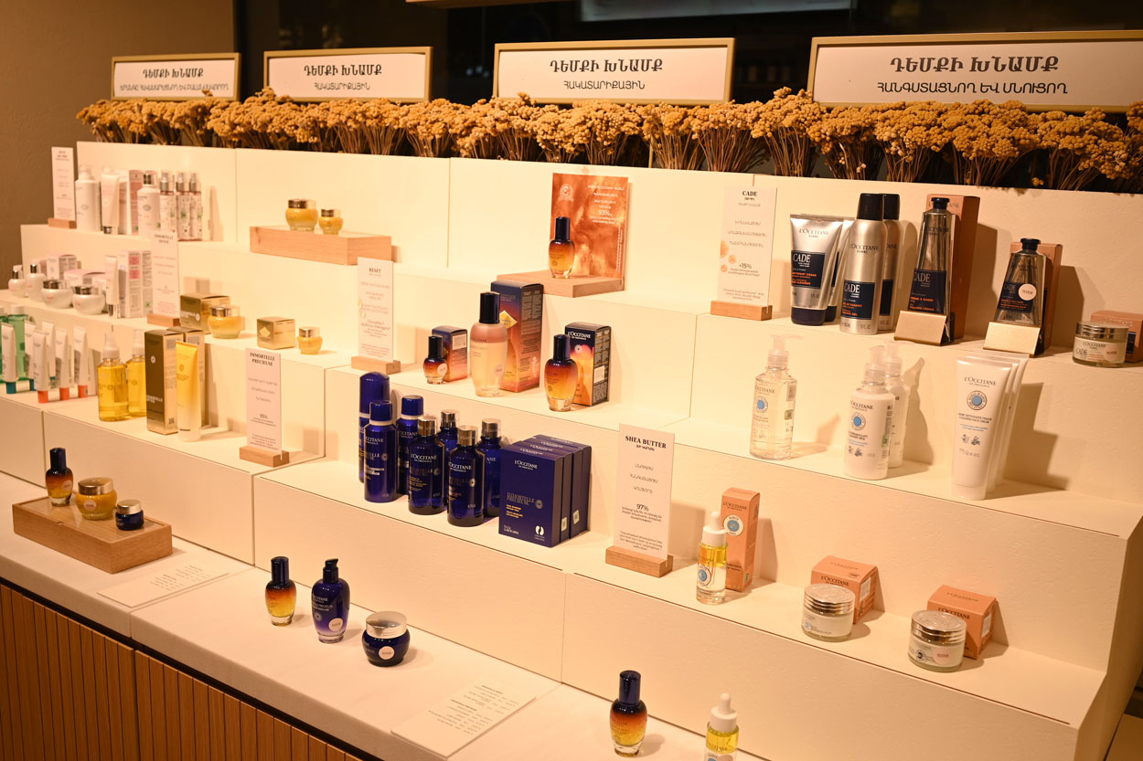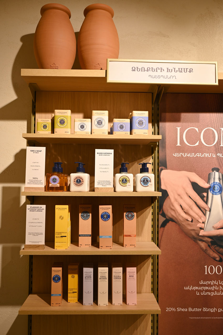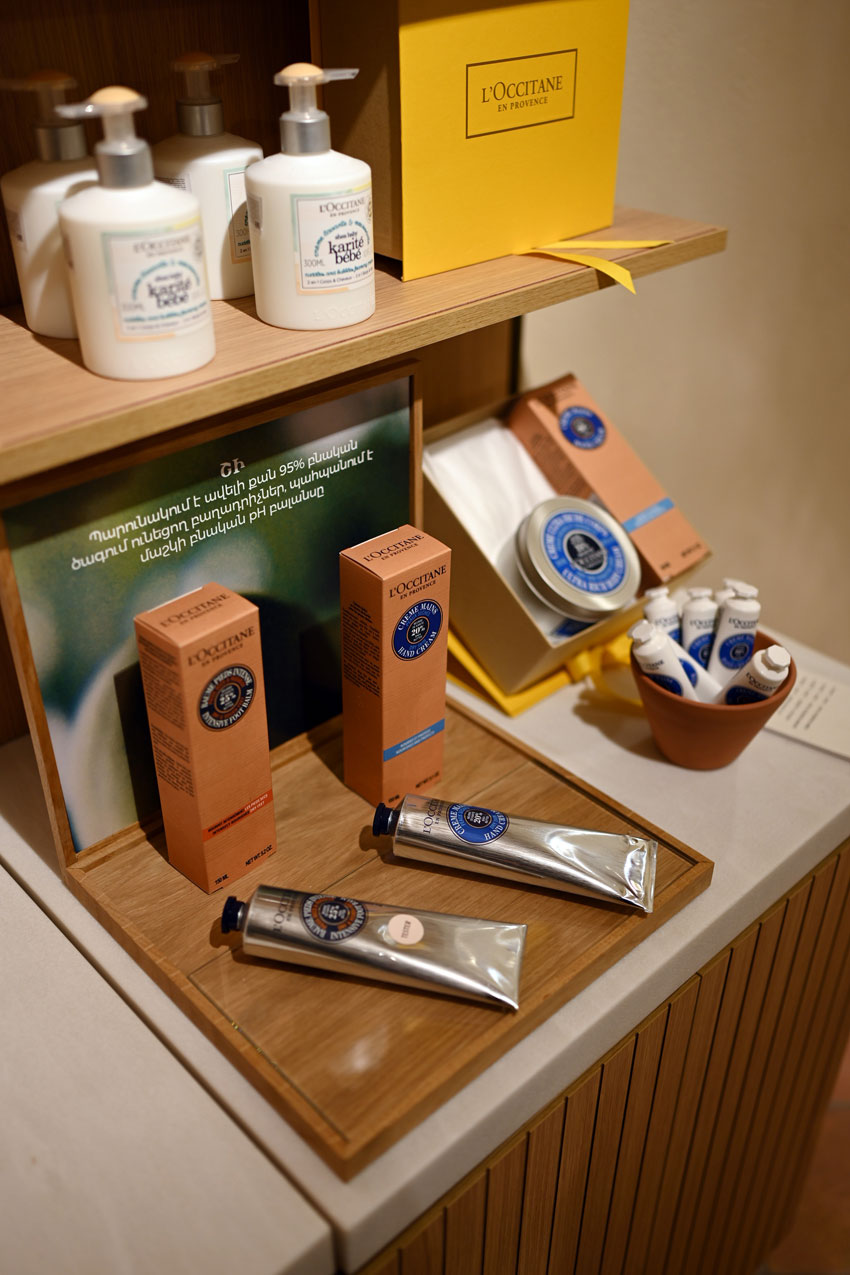 Սրահում ներկայացված են միայն L’Occitane en Provence ապրանքանիշի տեսականին՝ Պրովանսում աճեցվող և մշակվող բնական բաղադրիչներով ստեղծված ապրանքները։ Բացման միջոցառմանը ներկա են L’Occitane en Provence գլխավոր գրասենյակի ներկայացուցիչներ՝ մարքեթինգի, վաճառքի և թրեյնինգի բաժիններից։ Նրանք Հայաստանում են՝ միաժամանակ մասնակցելու բրենդի նոր սրահի մեկնարկին և տեղում համագործակցության գործընթացները խորացնելու նպատակով։