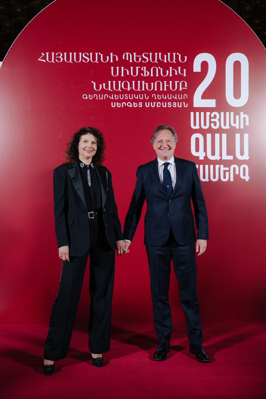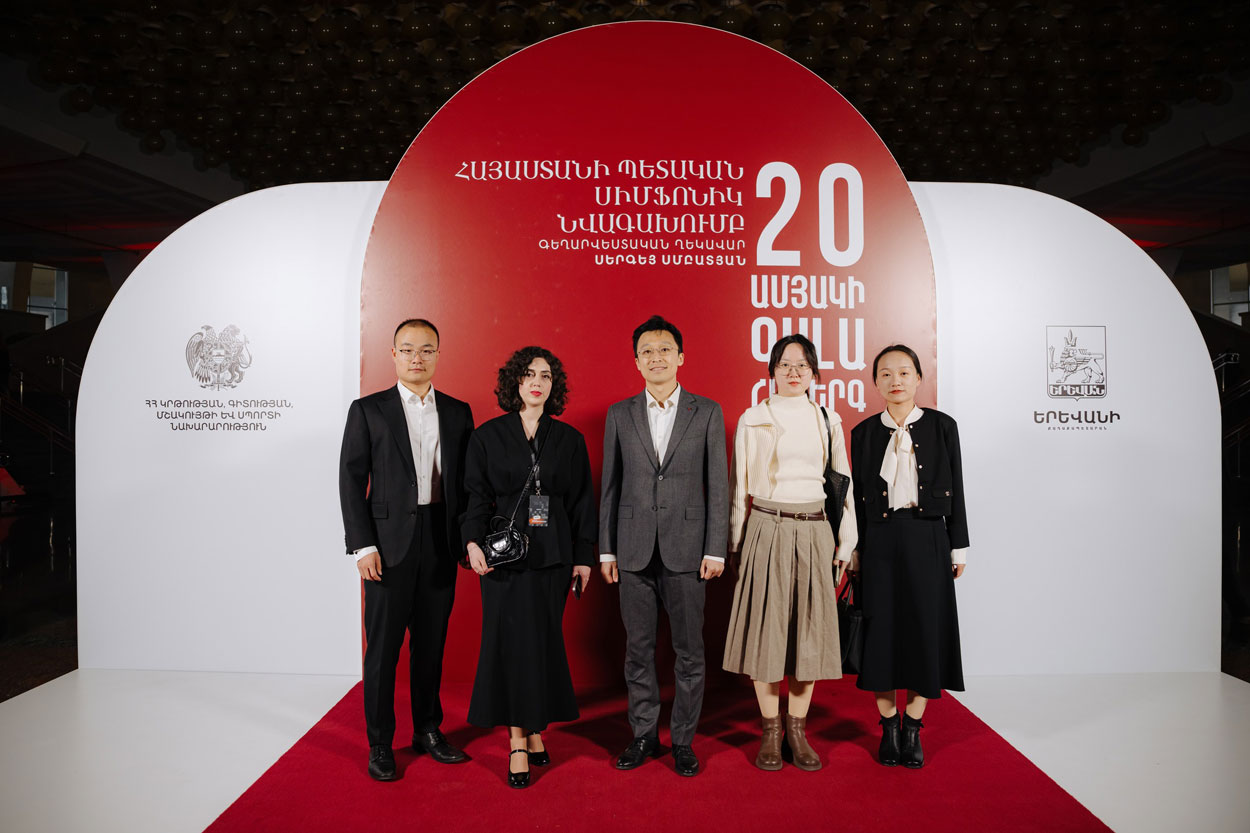 Նշեմ, որ համերգի մեկնարկից առաջ ՀՀ ԿԳՄՍ նախարար Ժաննա Անդրեասյանը պարգևատրել է ոլորտի միջազգային անվանի ներկայացուցիչների: Երաժշտարվեստի ոլորտում ունեցած նշանակալի ավանդի, միջազգային գործընկերային կապերն ու ձեռքբերումներն ամրապնդելու համար, ինչպես նաև Հայաստանի պետական սիմֆոնիկ նվագախմբի հիմնադրման 20-ամյա հոբելյանի կապակցությամբ ՀՀ կրթության, գիտության, մշակույթի և սպորտի նախարարության մեդալով են պարգևատրվել՝ Մերձավոր Արևելքի առաջատար կատարողական արվեստի կենտրոնի՝ Dubai Opera-ի ղեկավար, մշակութային հեղինակավոր գործիչ, գիտնական Պաոլո Պետրոչելլին, Royal Opera House Muscat օպերային թատրոնի գլխավոր տնօրեն և գեղարվեստական ղեկավար Ումբերտո Ֆաննին, բազմակի Գրեմմի մրցանակակիր, դասական երաժշտության ձայնային ռեժիսոր և պրոդյուսեր Քրիստոֆեր Ալդերը, ջութակահար, Jingse International Culture and Education կազմակերպության նախագահ Յուան Յուանը, միջազգային երաժշտական փառատոնների և մրցույթների նախագահ, մշակութային գործիչ և բարերար Կոնստանտին Իշխանովը: