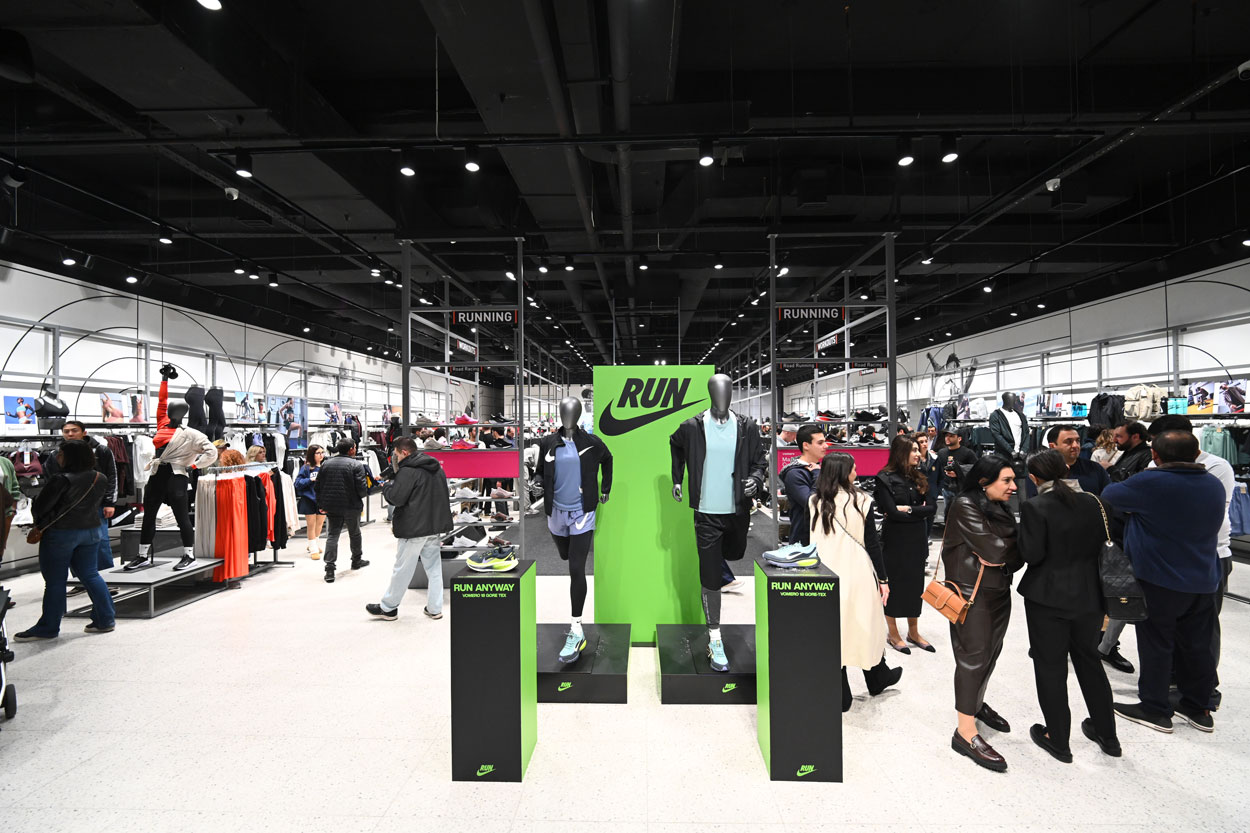 Մեգամոլի նորաբաց սրահը ձևավորված է Nike-ի վերջին՝ Nike Road to Rise կոնցեպտով՝ հենց այն, որը հանդիպում է աշխարհի խոշոր քաղաքներում՝ Լոնդոնից մինչև Դուբայ։ Տիրում է մինիմալիստական, սակայն էներգիայով լեցուն մթնոլորտ, որտեղ յուրաքանչյուր անկյուն ստեղծված է շարժման, ոգեշնչման և ինքնարտահայտման գաղափարների շուրջ։